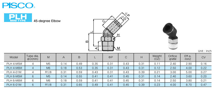 PLH4-M5M,PLH4-M6M,PLH4-01M,PLH6-M5M,PLH6-M6M,PLH6-01M,PISCO快速接頭