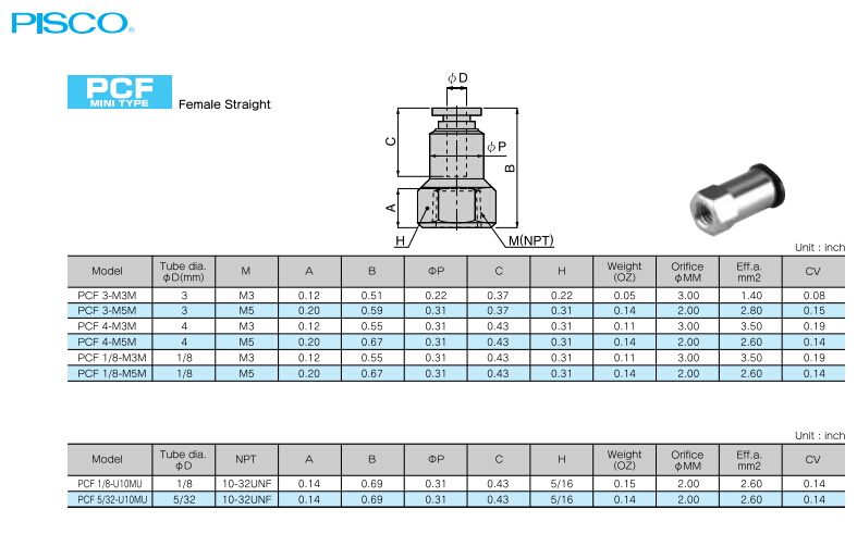 PCF3-M3M,PCF3-M5M,PCF4-M3M,PCF4-M5M,PCF1/8-M3M,PCF1/8-M5M,PCF1/8-U10MU,PCF5/32-U10MU |