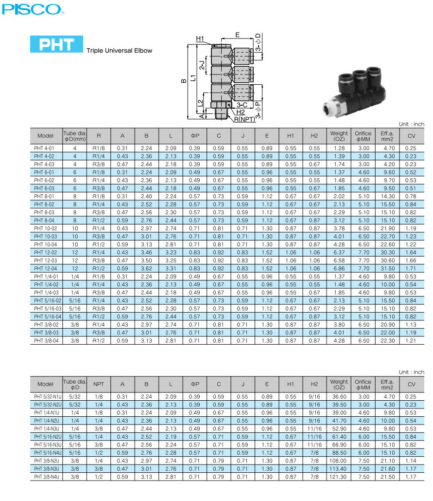 PHT5/32-N1U,PHT1/4-N1U,PHT5/16-N2U,PHT3/8-N2U,PHT5/32-N2U,PHT5/16-N3U,PHT3/8-N3U