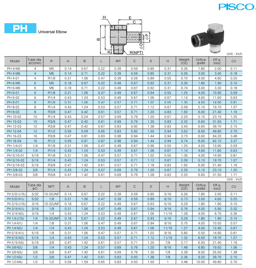 PH5/32-U10U,PH3/16-N1U,PH1/4-N1U,PH5/16-N1U,PH3/8-N2U,PH1/2-N2U,PISCO快速接頭