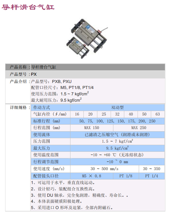 PXU-16*50,PXU-20*50,PXU-25*50,PXU-32*50,PXU-40*50,PXU-50*50,PXU-63*50,POSU導(dǎo)桿滑臺(tái)氣缸