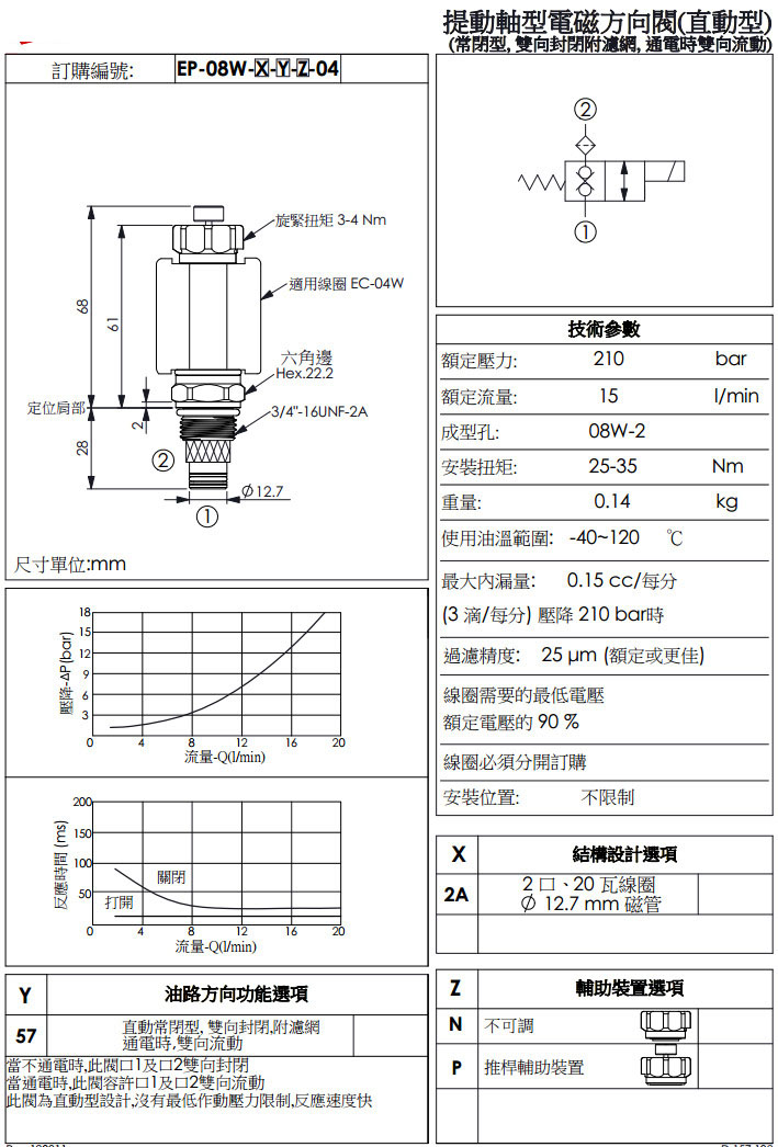 EP-08W-20A-57-N-04,EP-08W-20A-57-P-04,winner提動(dòng)軸型電磁方向閥