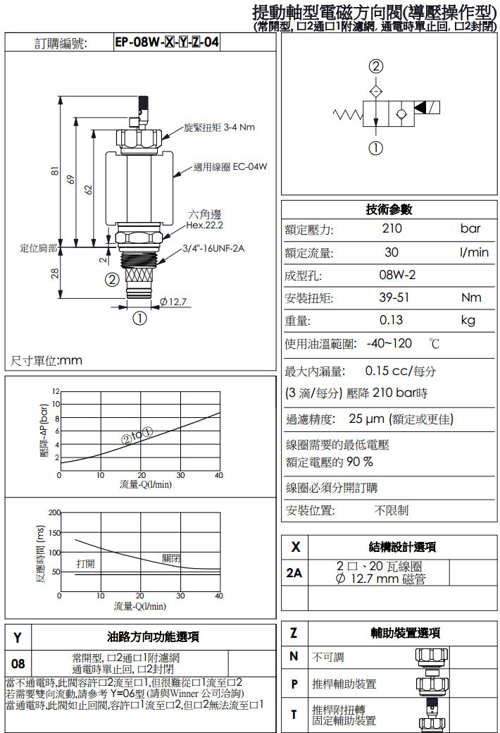 EP-08W-2A-08-N-04,EP-08W-2A-08-P-04,EP-08W-2A-08-T-04,winner提動(dòng)軸型電磁方向閥