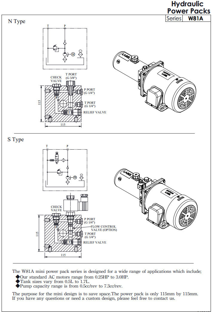 W81A,W81AB,W81BT,W81D,winner小型油壓動力單元