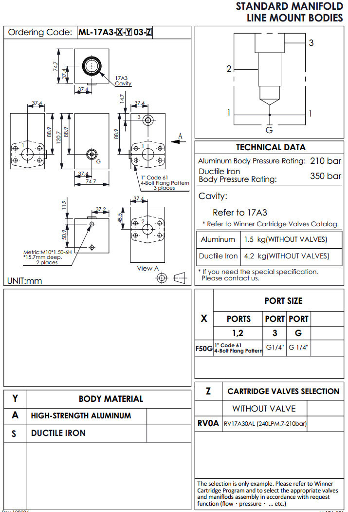 ML-17A3-F50G-A03-RV0A,ML-17A3-F50G-S03-RV0A,winner標準配管式油路板 |