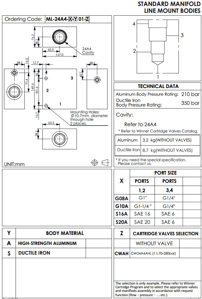 ML-24A4-G08A-A01-CWAH,ML-24A4-G10A-A01-CWAH,ML-24A4-S16A-A01-CWAH,ML-24A4-S20A-A01-CWAH,winner標(biāo)準(zhǔn)配管式油路板
