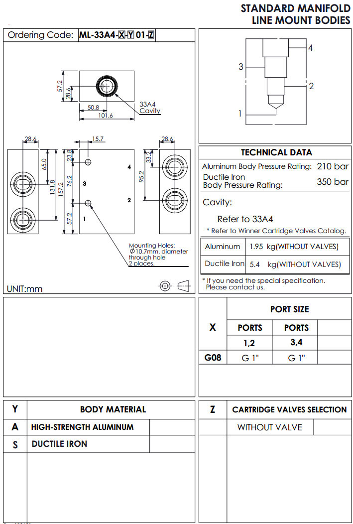 ML-33A4-G08-A01,ML-33A4-S08-A01,winner標(biāo)準(zhǔn)配管式油路板