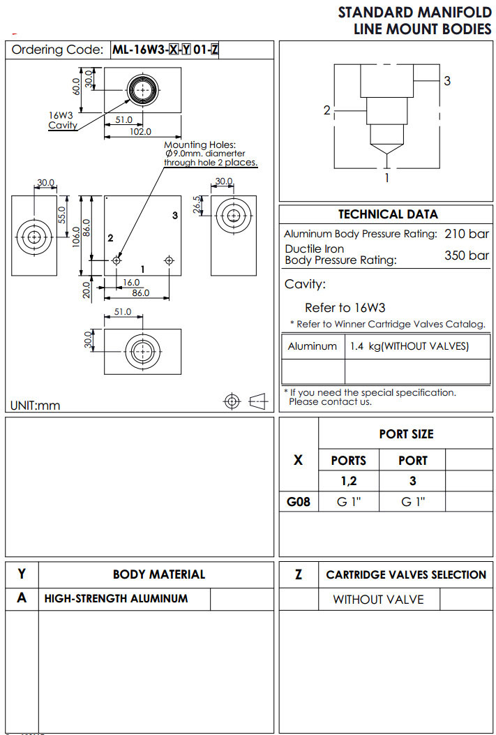 ML-16W3-G08-A01,winner標(biāo)準(zhǔn)配管式油路板