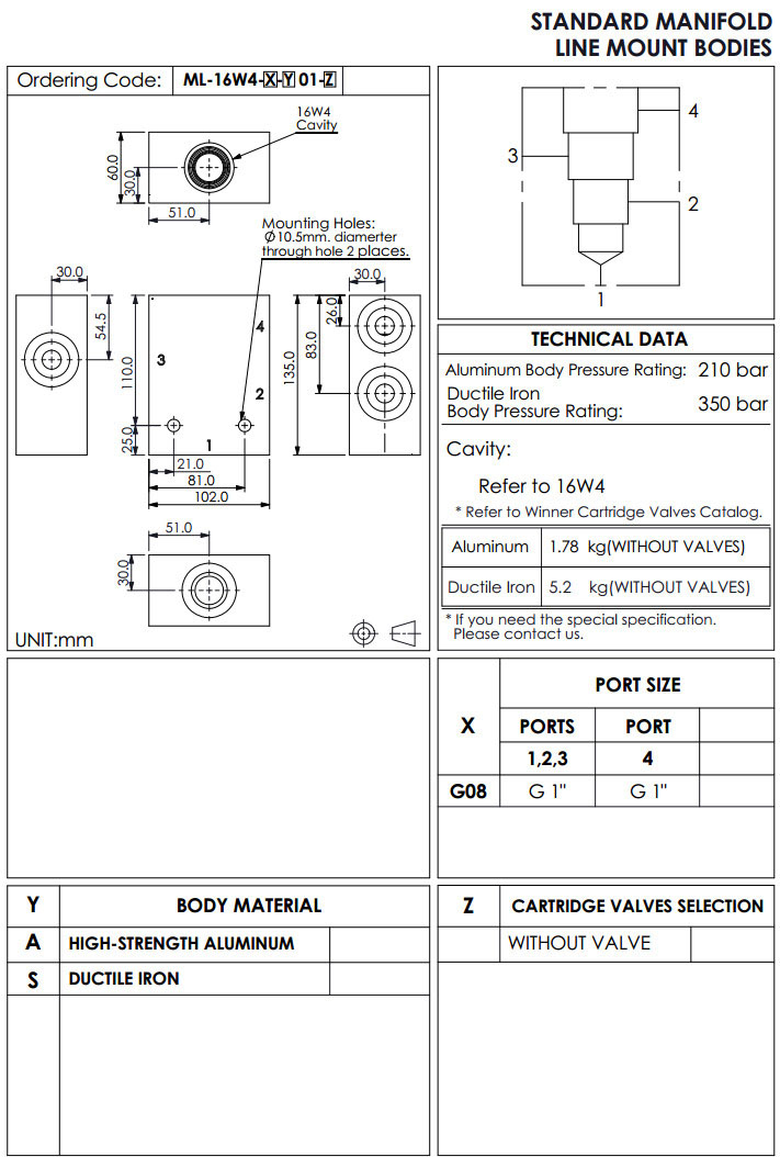 ML-16W4-G08-A01,ML-16W4-G08-S01,winner標(biāo)準(zhǔn)配管式油路板