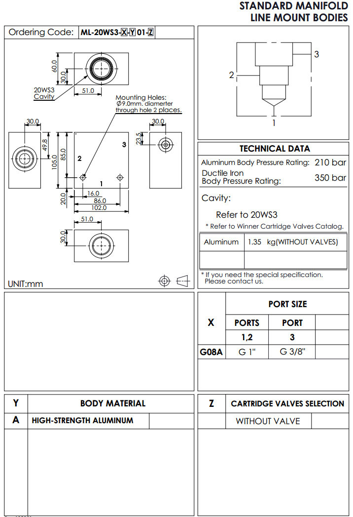 ML-20WS3-G08A-A01,winner標(biāo)準(zhǔn)配管式油路板