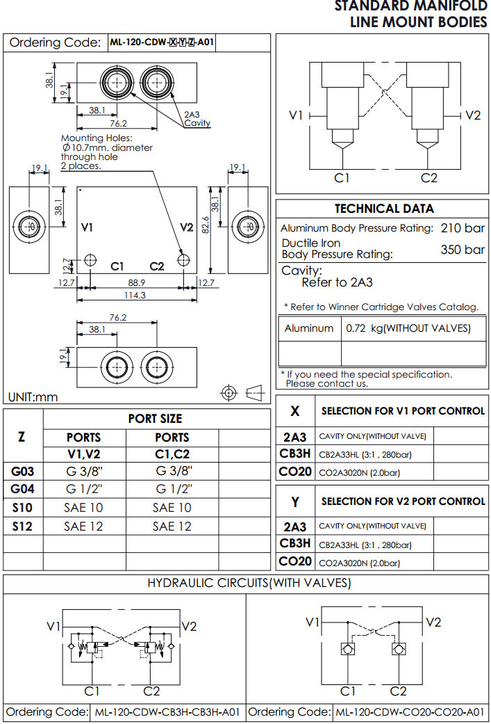 ML-120-CDW-2A3-2A3-G03-A01,ML-120-CDW-CB3H-CB3H-G03-A01,ML-120-CDW-CO20-CO20-G03-A01,winner標(biāo)準(zhǔn)配管式油路板
