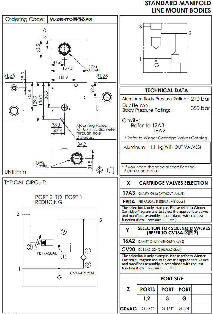 ML-240-PPC-17A3-16A2-G06AG-A01,ML-240-PPC-PB0A-16A2-G06AG-A01,winner標(biāo)準(zhǔn)配管式油路板 |
