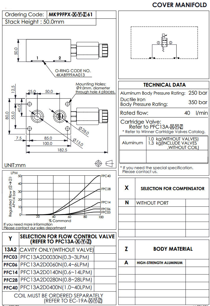 MK99FPX-N-13A2-A61,MK99FPX-N-PFC03-A61,MK99FPX-N-PFC06-A61,MK99FPX-N-PFC14-A61,winner積層蓋板式油路板