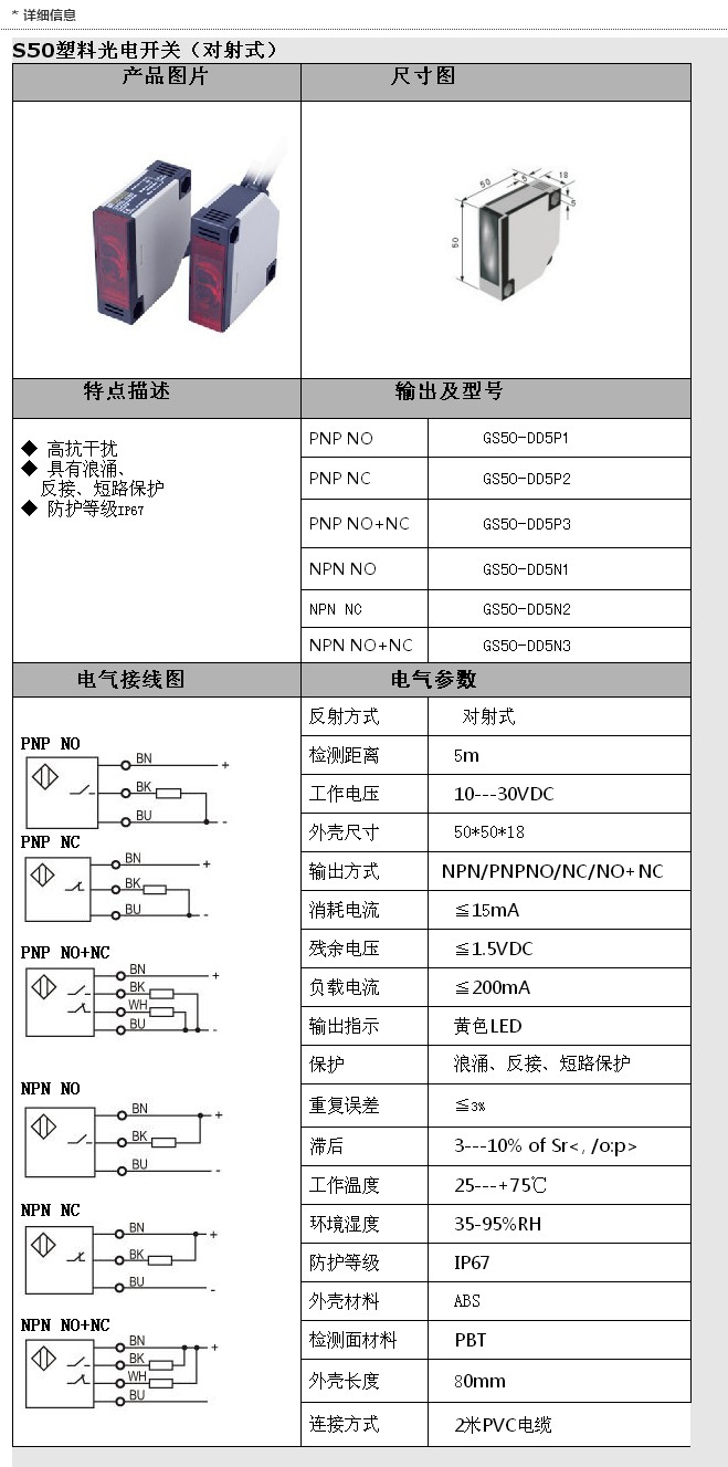 GS50-DD5P1,GS50-DD5P2,GS50-DD5P3,GS50-DD5N1,GS50-DD5N2,GS50-DD5N3,S50光電(對射)