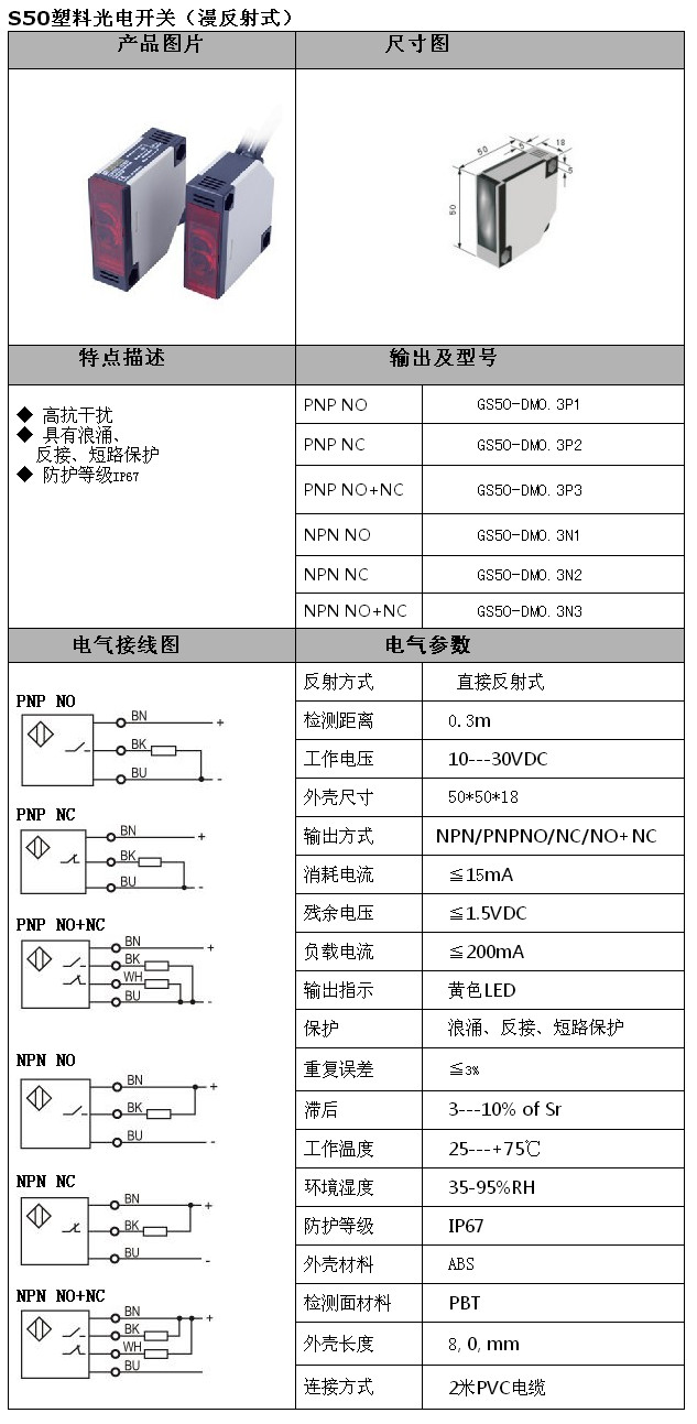 GS50-DM0.3P1,GS50-DM0.3P2,GS50-DM0.3P3,GS50-DM0.3N2,GS50-DM0.3N3,S50光電(漫反射)
