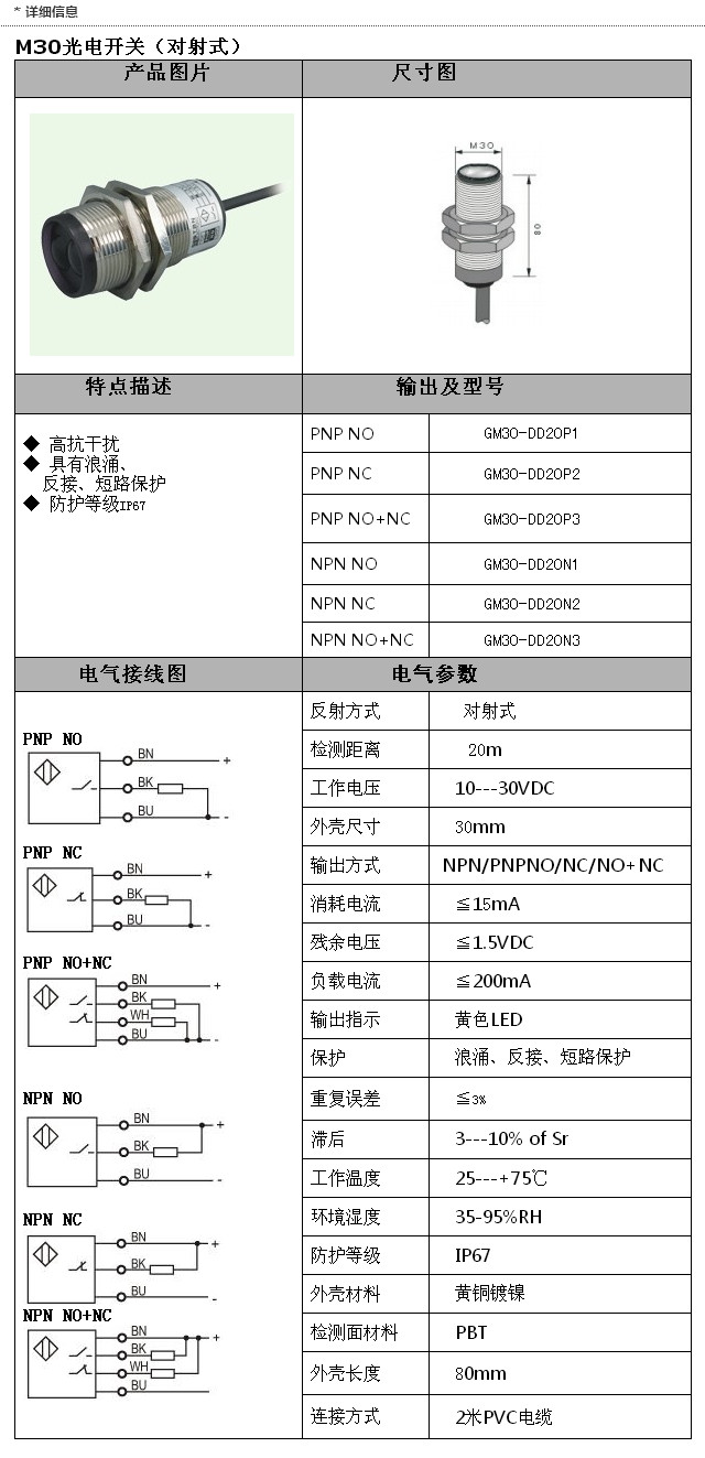 GM30-DD20P1,GM30-DD20P2,GM30-DD20P3,GM30-DD20N1,GM30-DD20N2,GM30-DD20N3,M30光電(對(duì)射)