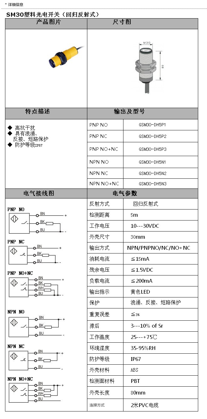 GSM30-DH5P1,GSM30-DH5P2,GSM30-DH5P3,GSM30-DH5N2,GSM30-DH5N3,SM30光電(回歸反射)