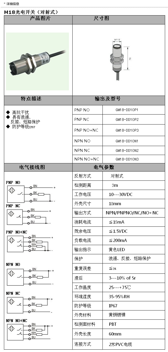 GM18-DD10P1,GM18-DD10P2,GM18-DD10P3,GM18-DD10N1,GM18-DD10N2,GM18-DD10N3,M18光電(對射)