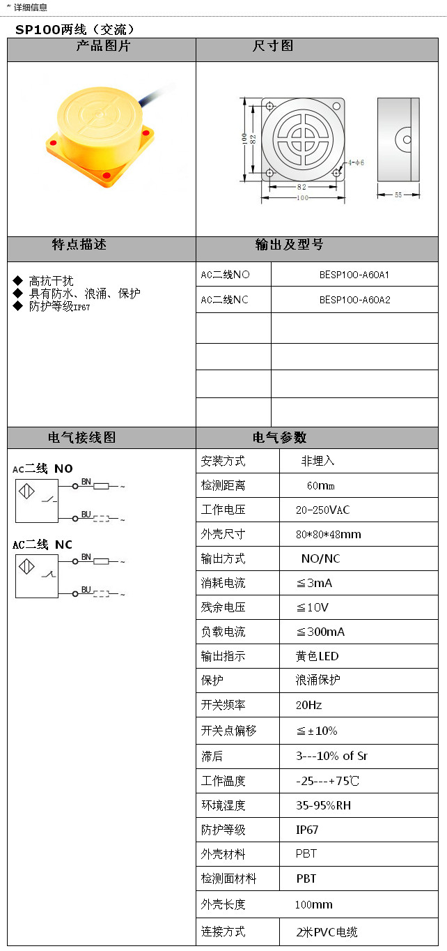 BESP100-A60A1,BESP100-A60A2,SP100交流兩線