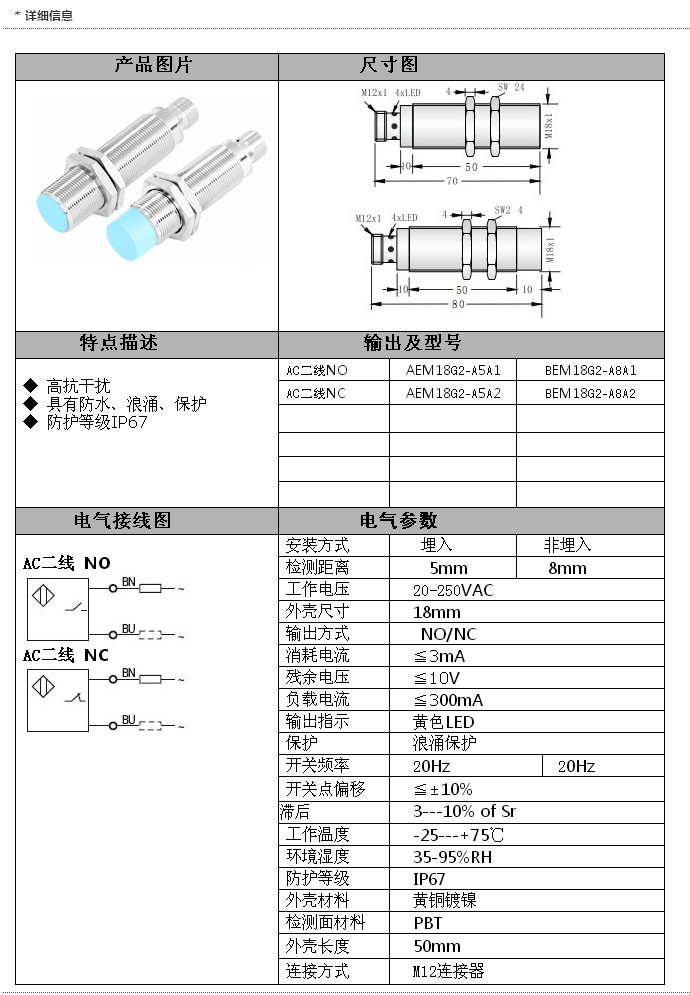 AEM18G2-A5A1,BEM18G2-A8A1,AEM18G2-A5A2,BEM18G2-A8A2,接插式M18交流兩線