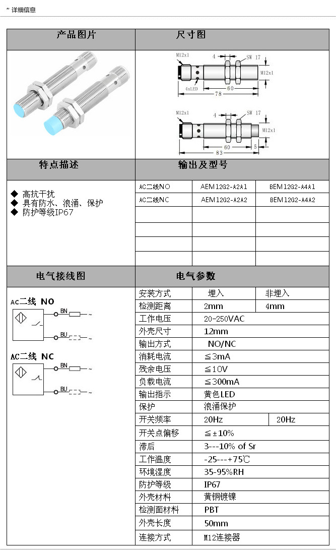 AEM12G2-A2A1,BEM12G2-A4A1,AEM12G2-A2A2,BEM12G2-A4A2,接插式M12交流兩線