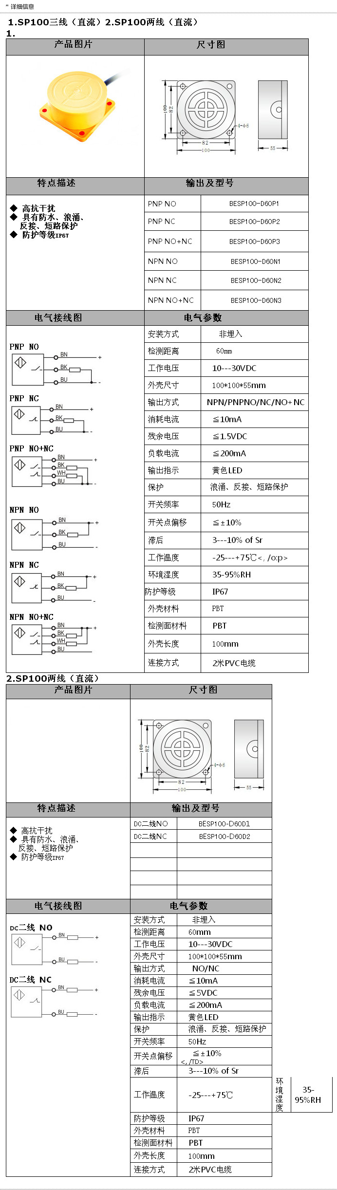 BESP100-D60P1,BESP100-D60P3,BESP100-D60N2,BESP100-D60N3,BESP100-D60D2,SP100直流三二線