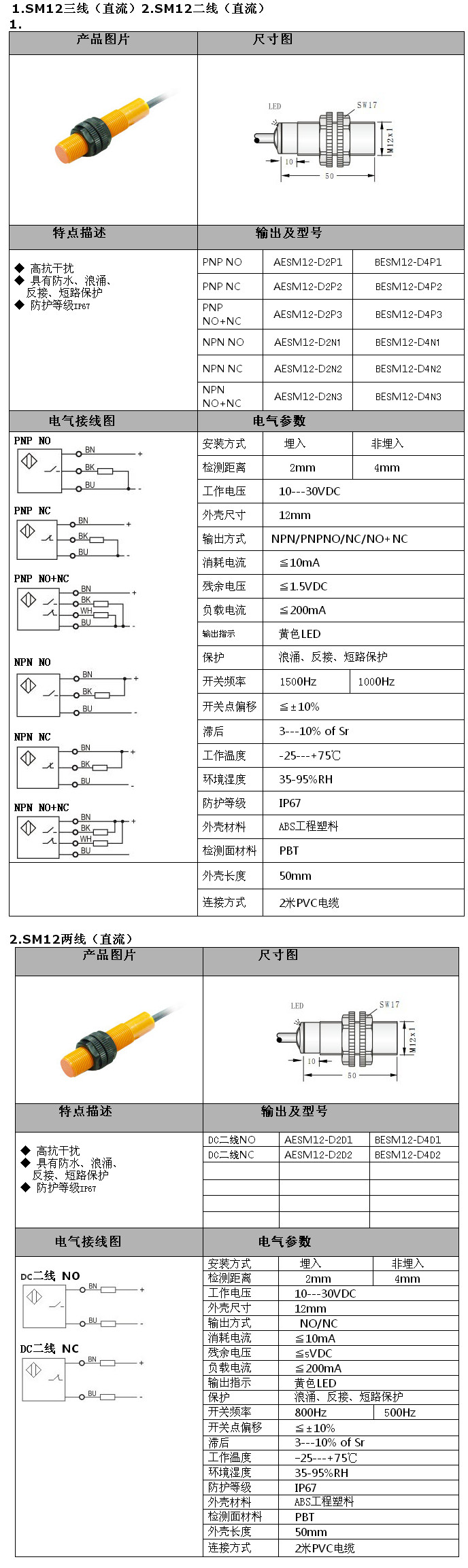 AESM12-D2P1,BESM12-D4P3,AESM12-D2N1,AESM12-D2N3,AESM12-D2D2,BESM12-D4D2,SM12直流三二線