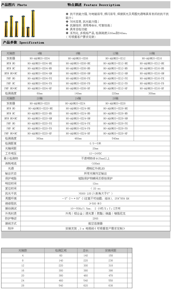 安全光幕傳感器,HG-AQGM20-GZ04,HG-AQGM20-GZ08,HG-AQGM20-GZ12,HG-AQGM20-GZ16,HG-AQGM20-GZ20.HG-AQGM20-GZ24.HG-AQGM20-GZ28,