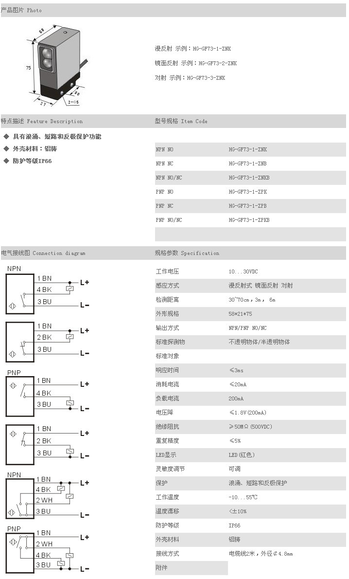/傳感器 HG-GF73-1-ZNK,HG-GF73-1-ZNB,HG-GF73-1-ZNKB,HG-GF73-1-ZPK,HG-GF73-1-ZPB,HG-GF73-1-ZPKB,