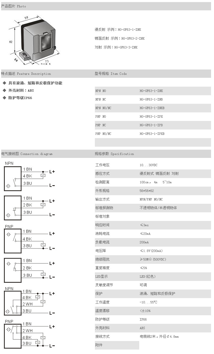 方型光電開關/傳感器 HG-GF63-1-ZNK,HG-GF63-1-ZNB,HG-GF63-1-ZNKB,HG-GF63-1-ZPK,HG-GF63-1-ZPB,HG-GF63-1-ZPKB, |