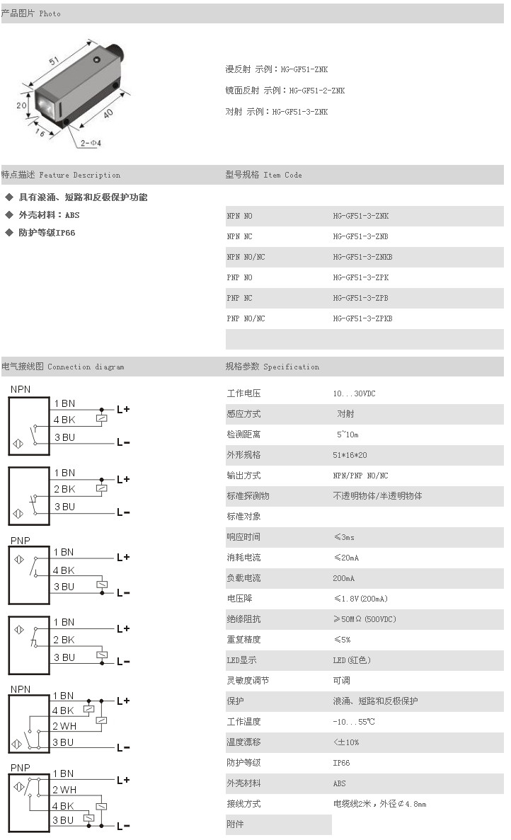 方型光電開關(guān)/傳感器 HG-GF51-3-ZNK,HG-GF51-3-ZNB,HG-GF51-3-ZNKB,HG-GF51-3-ZPK,HG-GF51-3-ZPB,HG-GF51-3-ZPKB, |