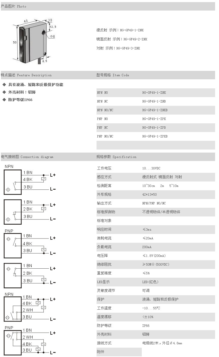 /傳感器 HG-GF49-1-ZNK,HG-GF49-1-ZNB,HG-GF49-1-ZNKB,HG-GF49-1-ZPK,HG-GF49-1-ZPB,HG-GF49-1-ZPKB,