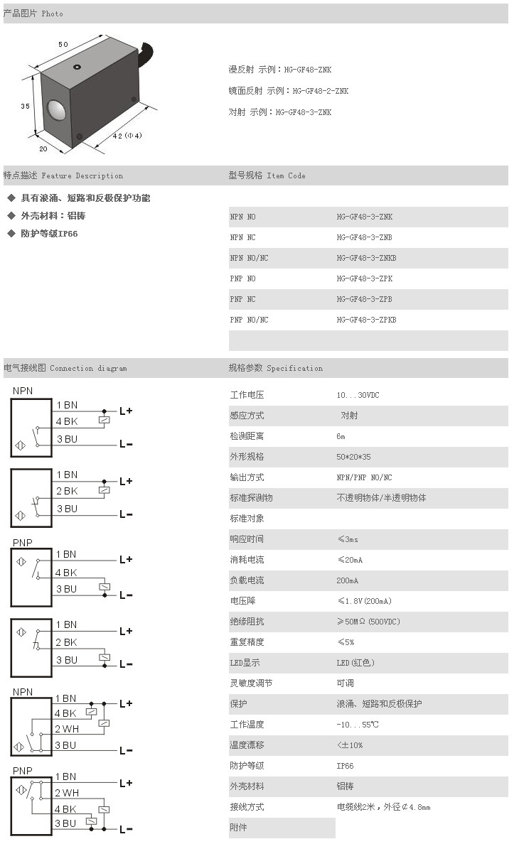 方型光電開關(guān)/傳感器 HG-GF48-3-ZNK,HG-GF48-3-ZNB,HG-GF48-3-ZNKB,HG-GF48-3-ZPK,HG-GF48-3-ZPB,HG-GF48-3-ZPKB |