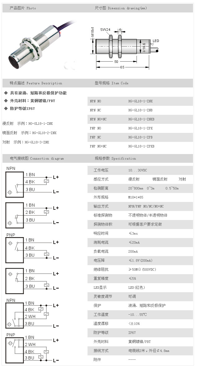 /傳感器 HG-GL18-1-ZNK,HG-GL18-1-ZNB,HG-GL18-1-ZNKB,HG-GL18-1-ZPK,HG-GL18-1-ZPB,HG-GL18-1-ZPKB,HG-GL18-2-ZNK,HG-GL18-2-ZNB,HG-GL18-2-ZNKB,HG-GL18-2-ZPK,HG-GL18-2-ZPB,HG-GL18-2-ZPKB,HG-GL18-3-ZNK,HG-GL18-3-ZNB,HG-GL18-3-ZNKB,HG-GL18-3-ZPK,HG-GL18-3-ZPB,HG-GL18-3-ZPKB,
