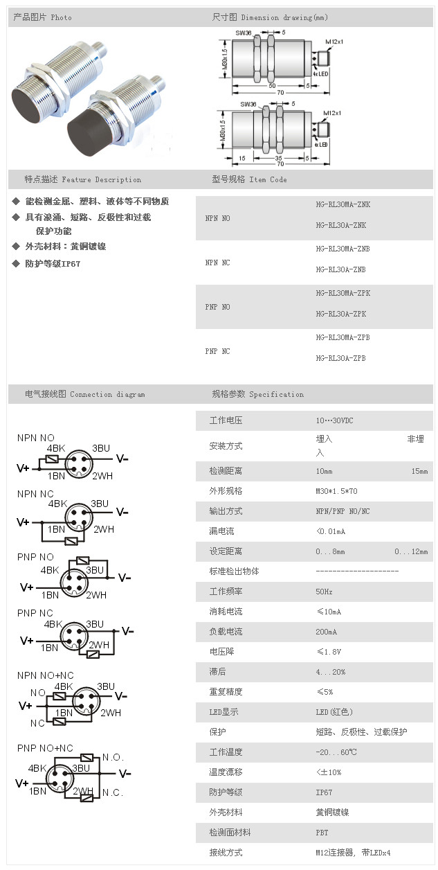 電容式接近傳感器 HG-RL30MA-ZNK,HG-RL30A-ZNK,HG-RL30MA-ZNB,HG-RL30A-ZNB,