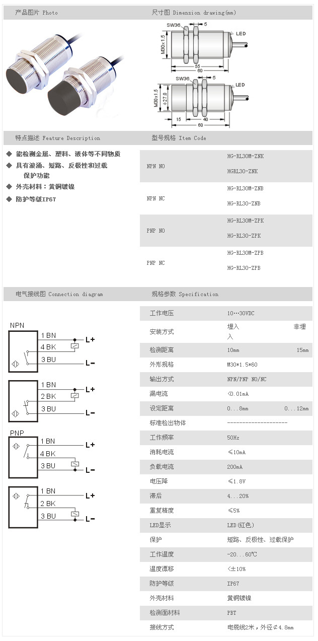 電容式接近傳感器 HG-RL30M-ZNK,HGRL30-ZNK,HG-RL30M-ZNB,HG-RL30-ZNB,HG-RL30M-ZPK,HG-RL30-ZPK,HG-RL30M-ZPB,HG-RL30-ZPB,