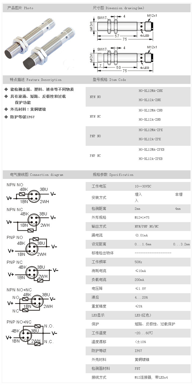 電容式接近傳感器 HG-RL12MA-ZNK,HG-RL12A-ZNK,HG-RL12MA-ZNB,HG-RL12A-ZNB,HG-RL12MA-ZPK,HG-RL12A-ZPK,HG-RL12MA-ZPKB,HG-RL12A-ZPKB,