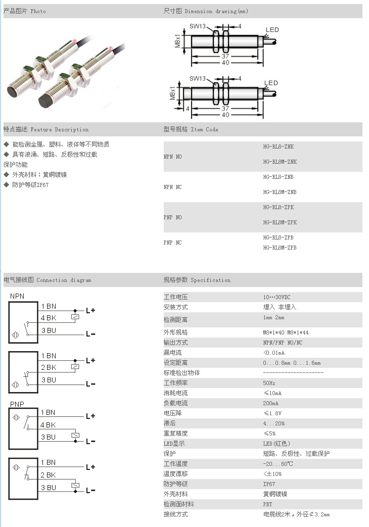 電容式接近傳感器 HG-RL8-ZNK,HG-RL8M-ZNK,HG-RL8-ZNB,HG-RL8M-ZNB,HG-RL8-ZPK,HG-RL8M-ZPK,HG-RL8-ZPB,HG-RL8M-ZP