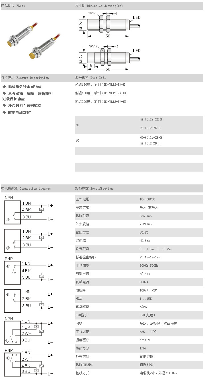 耐高溫接近開關(guān)(低溫) HG-WL12M-ZK-H,HG-WL12-ZK-H,HG-WL12M-ZB-H,HG-WL12-ZB-H,