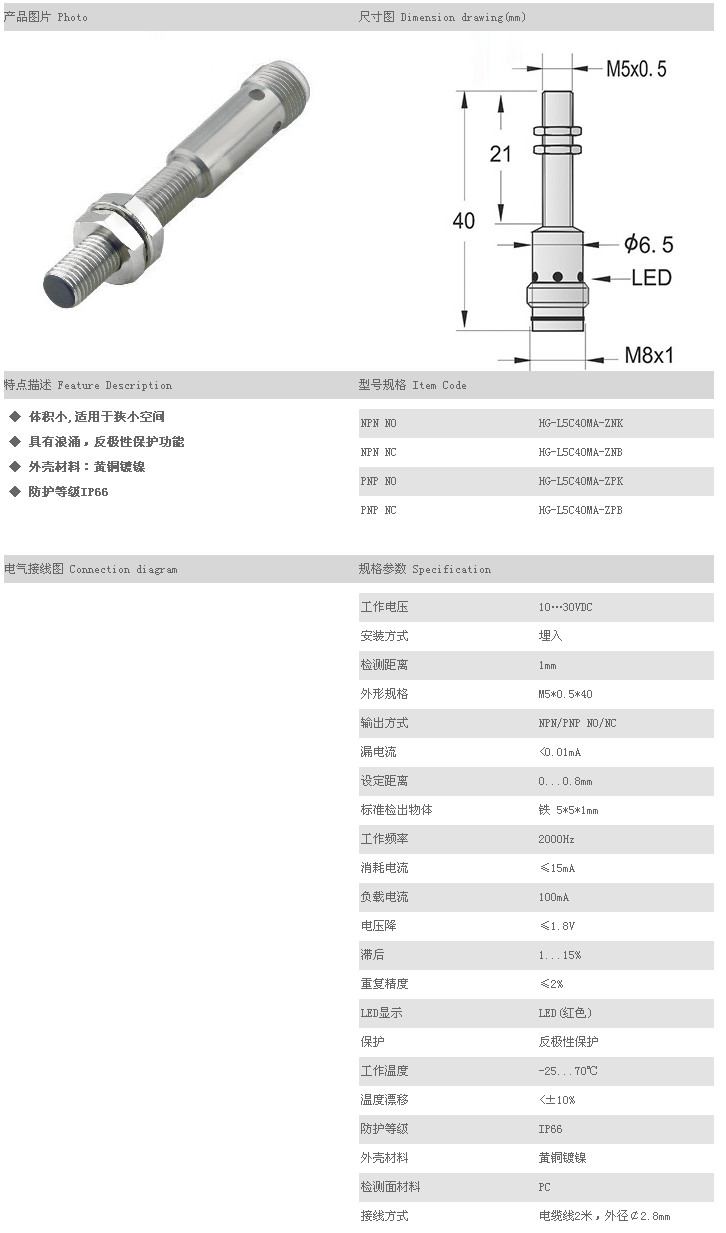 超小型接近開關 HG-L5C40MA-ZNK,HG-L5C40MA-ZNB,HG-L5C40MA-ZPK,HG-L5C40MA-ZPB,