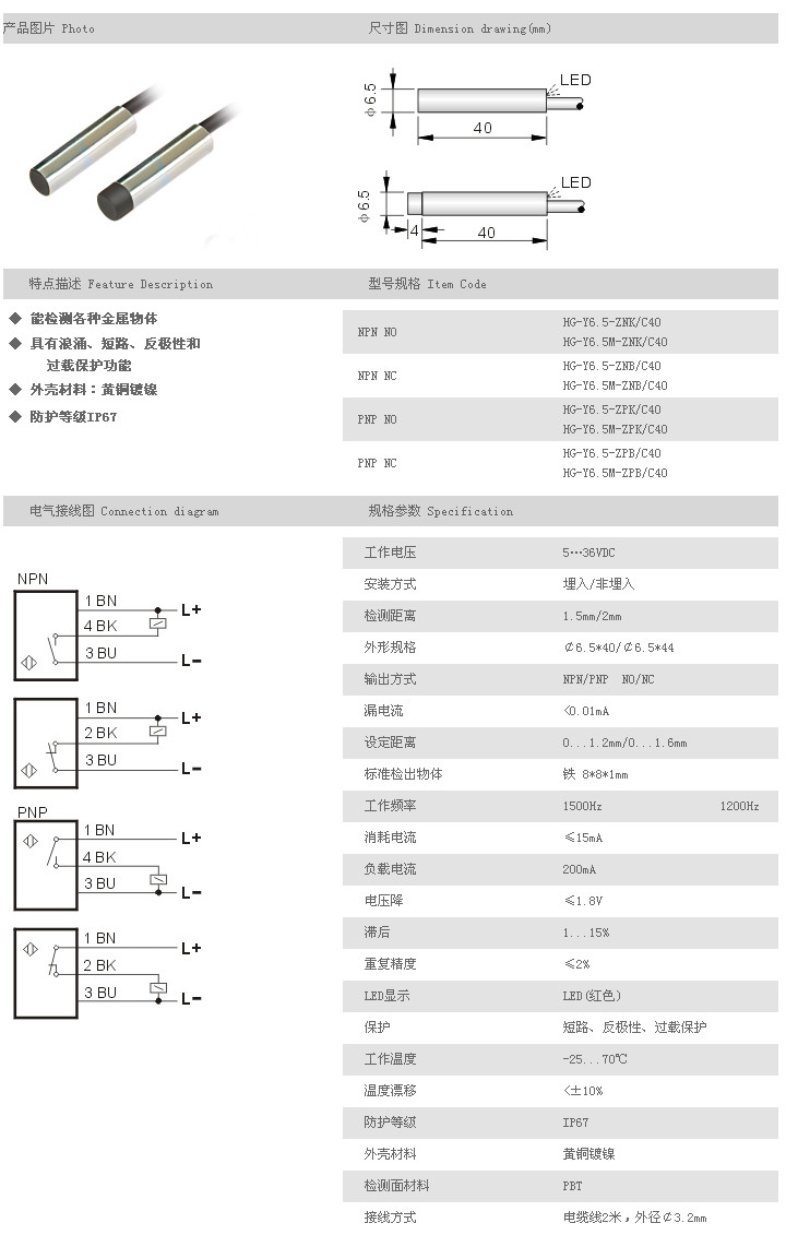 超小型接近開關(guān) HG-Y6.5-ZNK/C40,HG-Y6.5M-ZNK/C40,HG-Y6.5-ZNB/C40,HG-Y6.5M-ZNB/C40,HG-Y6.5-ZPK/C40,HG-Y6.5M-Z |