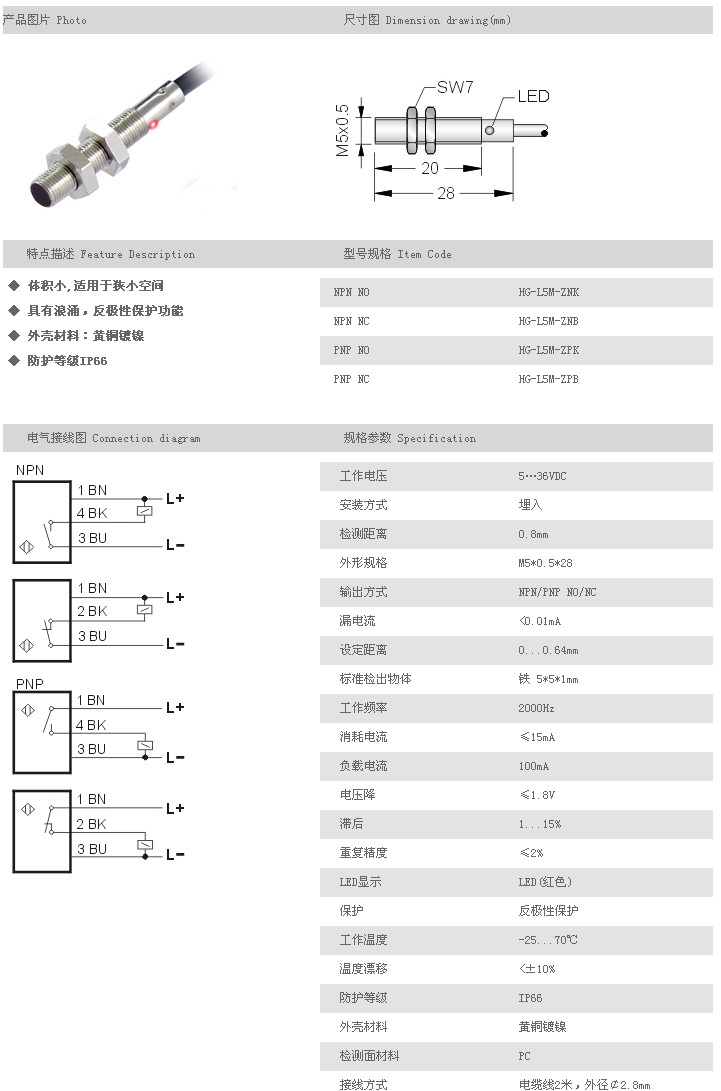 超小型接近開關(guān) HG-L5M-ZNK,HG-L5M-ZNB,HG-L5M-ZPK,HG-L5M-ZPB,