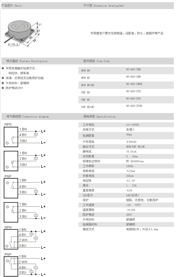 餅型接近傳感器 HG-A80-ZNK,HG-A80-ZNB,HG-A80-ZNKB,HG-A80-ZPK,HG-A80-ZPB,HG-A80-ZPKB,