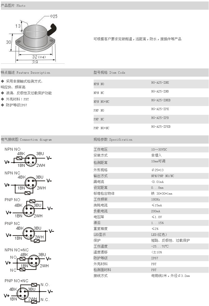 餅型接近傳感器 HG-A25-ZNK,HG-A25-ZNB,HG-A25-ZNKB,HG-A25-ZPK,HG-A25-ZPB,HG-A25-ZPKB,