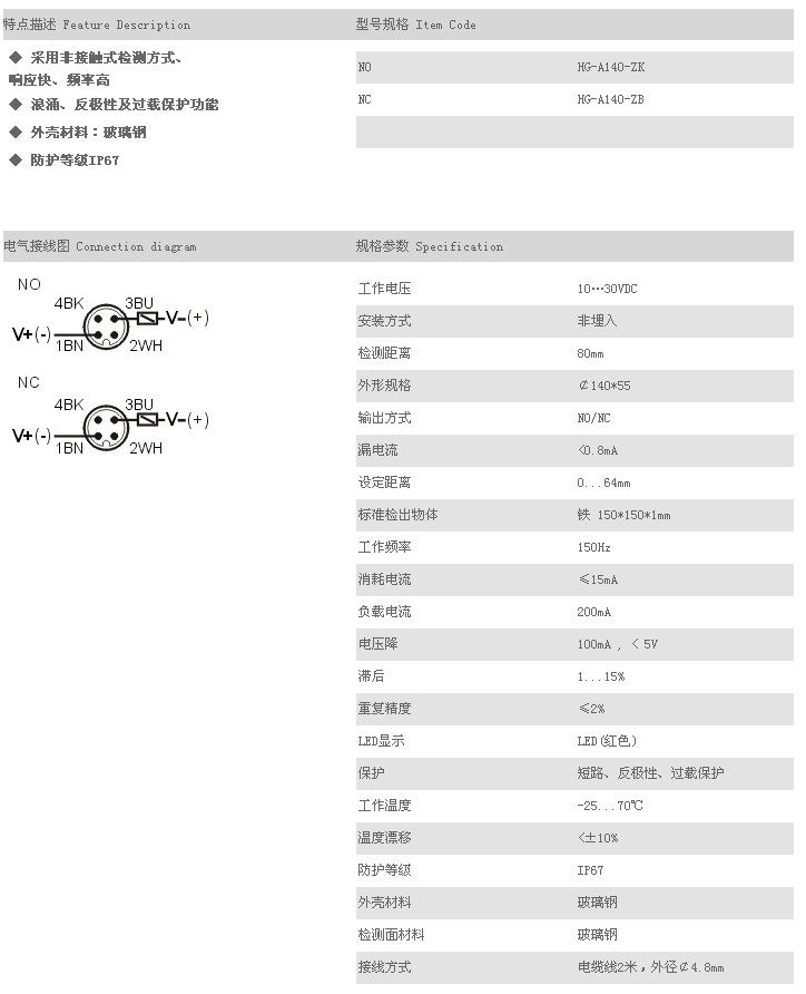 餅型接近傳感器 HG-A140-ZK,HG-A140-ZB,