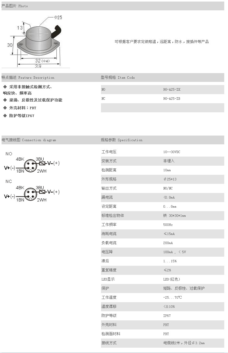 餅型接近傳感器 HG-A25-ZK,HG-A25-ZB,