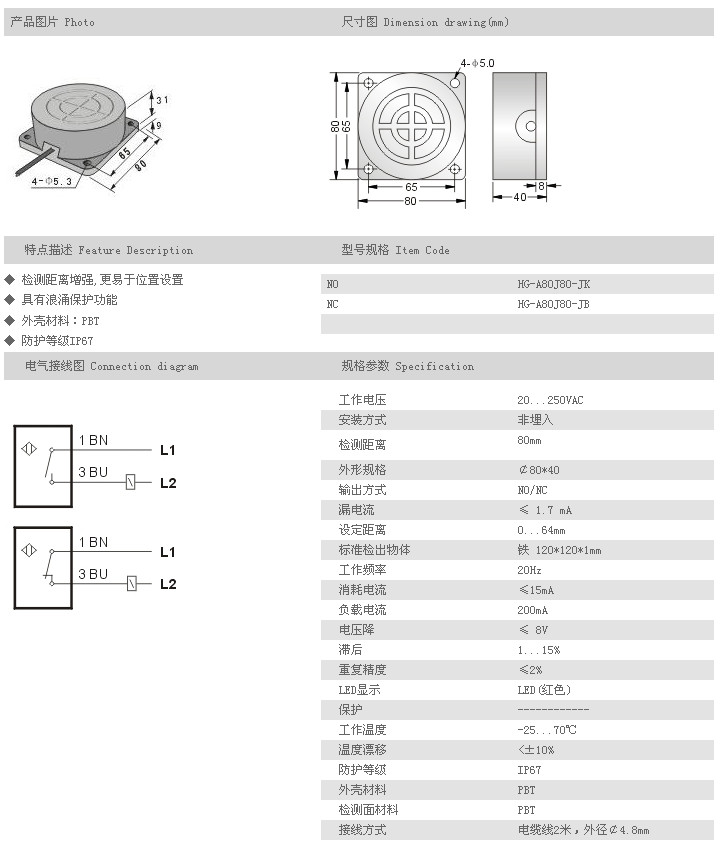 遠(yuǎn)距離型接近開關(guān) HG-A80J80-JK,HG-A80J80-JB,