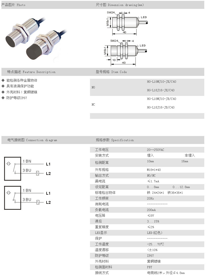 遠(yuǎn)距離型接近開關(guān) HG-L18MJ10-JK/C40,HG-L18J16-JK/C40,HG-L18MJ10-JB/C40,HG-L18J16-JB/C40, |