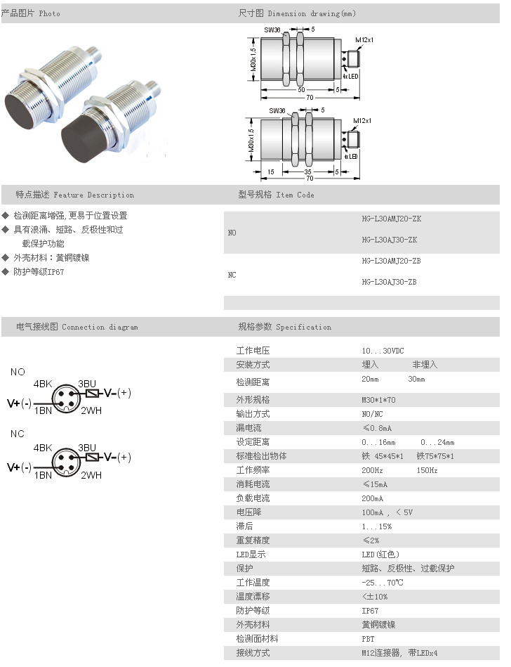遠距離型接近開關(guān) HG-L30AMJ20-ZK,HG-L30AJ30-ZK,HG-L30AMJ20-ZB,HG-L30AJ30-ZB,