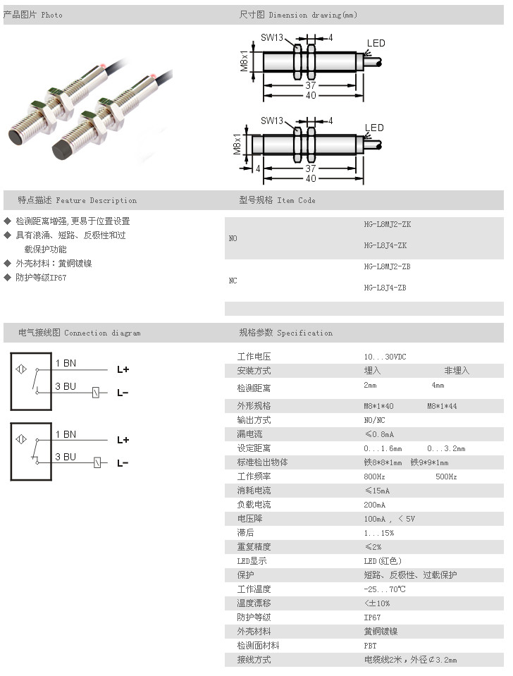 遠(yuǎn)距離型接近開關(guān) HG-L8MJ2-ZK,HG-L8J4-ZK,HG-L8MJ2-ZB,HG-L8J4-ZB,